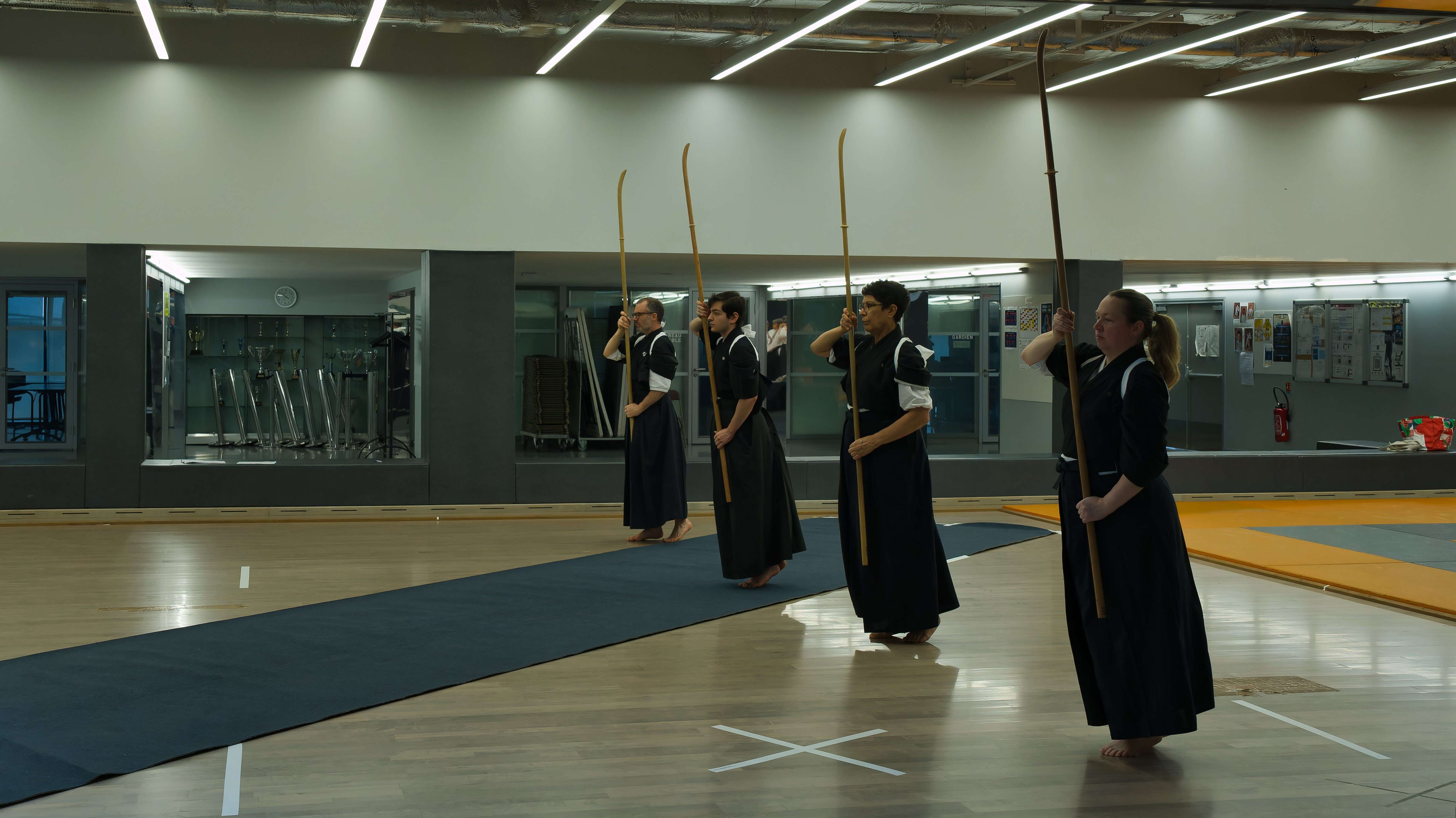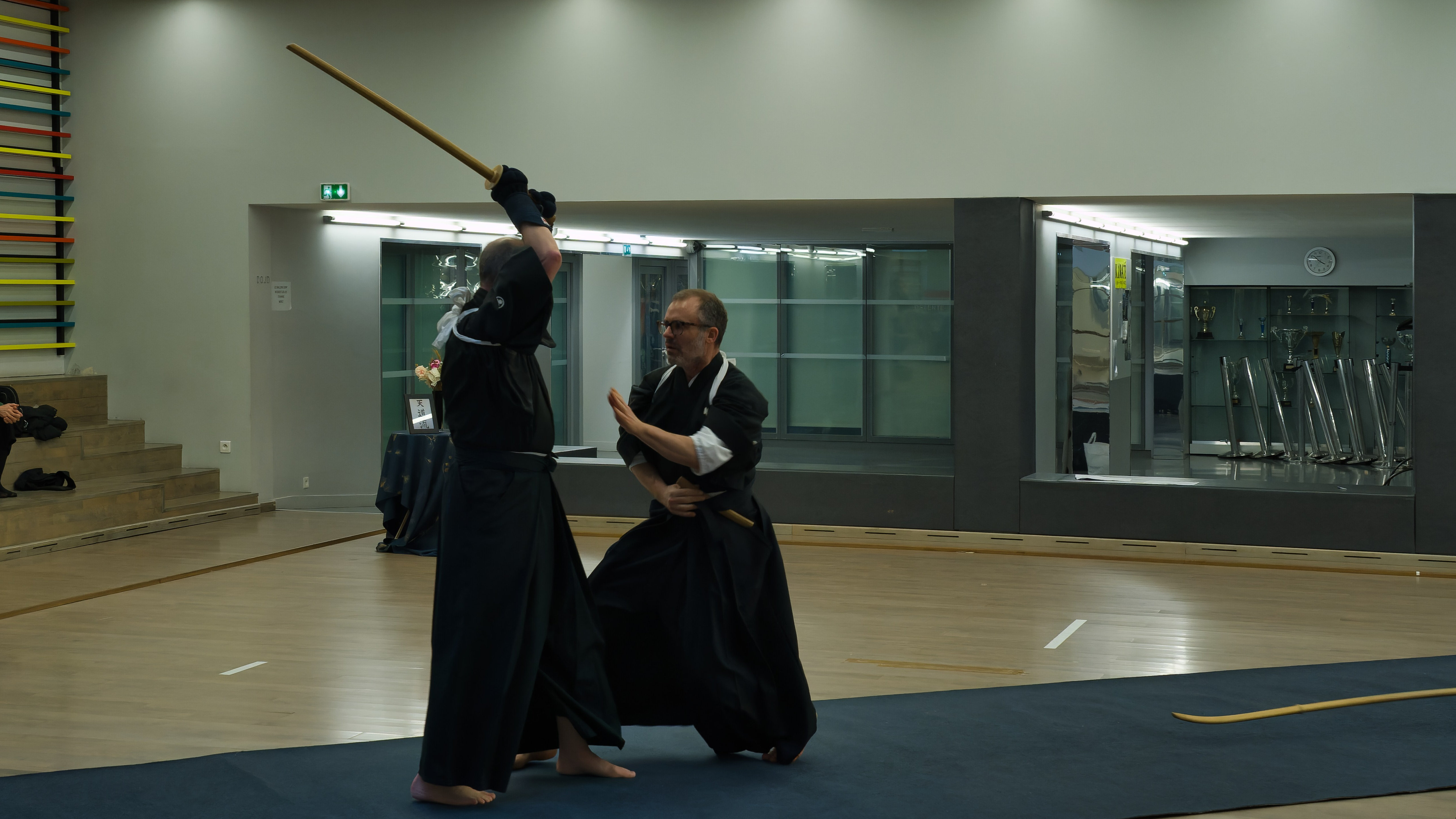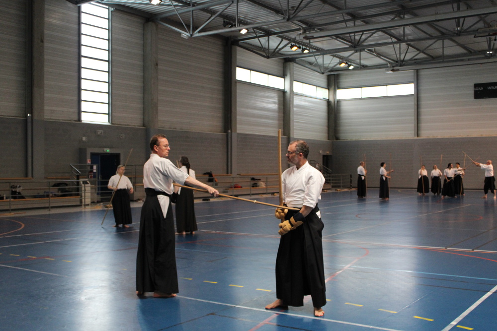 Chaleureusement accueillis par Versailles Budo au gymnase Montbauron, nous avons ainsi pu participer au stage de Tendo Ryu sous l’égide d’Eric Montes Sensei venu tout spécialement de Californie pour l’occasion.